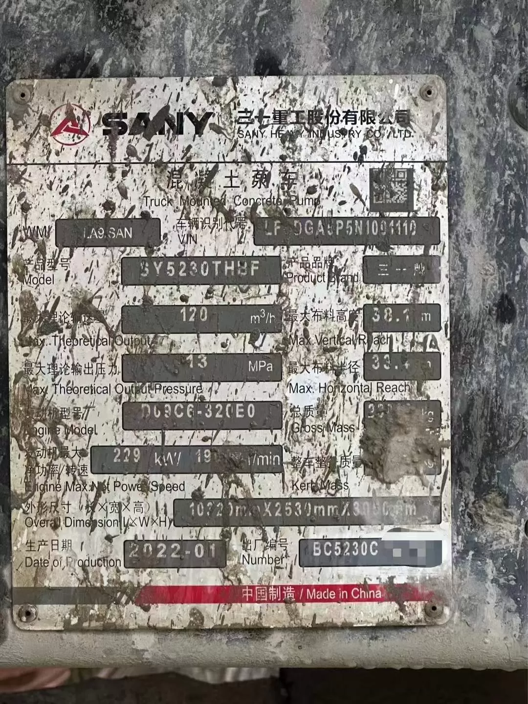 $Specs for 90K USD 2022 Sany 39m truck mounted concrete pump